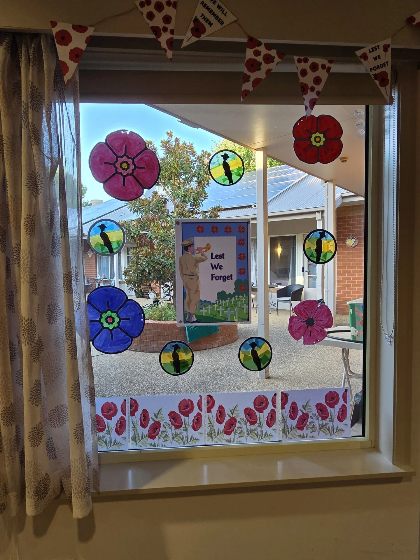 We created ANZAC crafts leading up to the day, creating stained glass images from cellophane, paper poppies and egg carton poppies for a wreath.